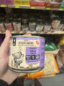 Wiejska Zagroda Kurczak z Kaczką to wysokiej jakości mokra karma pełnoporcjowa dla dorosłych kotów. Oferuje dużą ilość białka zwierzęcego, brak zbędnych dodatków roślinnych i bardzo wysoką zawartość tauryny. Zdecydowanie polecana dla zdrowych kotów domowych i wychodzących. W przypadku kotów starszych lub chorych zaleca się indywidualną ocenę lub uzupełnienie diety o brakujące składniki.