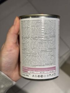 Skład: 74% jagnięcina (mięso, narządy), 3% mąka grochowa, 1% lignoceluloza