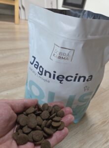 Sucha forma karmy ułatwia jej przechowywanie i codzienne stosowanie. Dawkowanie jest jasne i dostosowane do masy ciała psa. Ze względu na wysoką zawartość jagnięciny i tłuszczów, karma prawdopodobnie będzie smakowita i chętnie jedzona, nawet przez mniej łakome psy. Dodatki ziołowe (mięta) i ograniczona ilość sztucznych substancji to dodatkowe zalety.