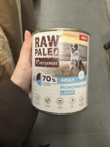 Karma Raw Paleo Cod Light Monoprotein Adult Dog od VetExpert to mokra, pełnoporcjowa propozycja żywieniowa dla dorosłych psów. Szczególnie dobrze sprawdzi się u czworonogów z nadwagą, problemami trawiennymi lub alergiami pokarmowymi. Przeanalizowałam jej skład, profil surowcowy oraz wartość energetyczną, aby ocenić, czy odpowiada współczesnym standardom żywienia psów oraz normom FEDIAF.